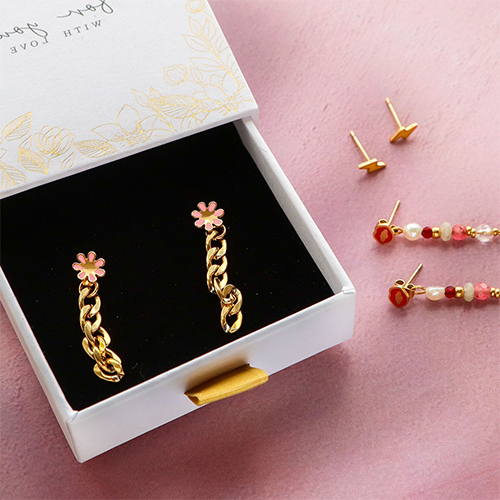 Orecchini in acciaio inossidabile fiore oro-rosa