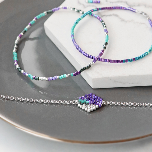 Con le popolari perline Miyuki puoi realizzare innumerevoli gioielli, ma la cosa migliore da fare è creare bigiotteria in stile minimal. Per realizzarli la bigiotteria puoi utilizzare diversi materiali infilaperle, come ad esempio l’elastico trasparente da 0,5 mm, il filo infilaperle Beadalon o la coda di topo. Quando utilizzi queste piccole perline ti consigliamo di lavorare su un tappetino Beadalon, così tutto rimarrà al proprio posto mentre realizzi i gioielli. Puoi variare abbinando le Miyuki Delica alle perline e ai ciondoli di metallo DQ. Libera la tua creatività e realizza fantastiche combinazioni accattivanti grazie alla splendida lucentezza delle perline. Naturalmente, con le Miyuki Delica puoi anche realizzare un set di orecchini abbinabili. Buon lavoro!