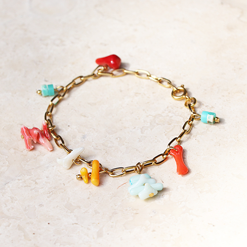 Perlines bambù oceano rosso corallo biancato