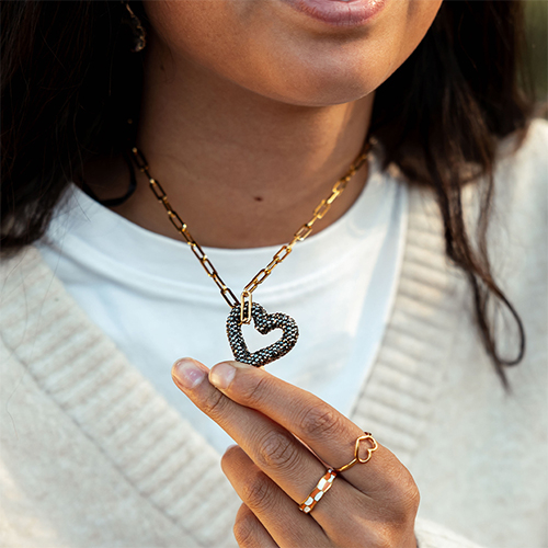 Quest'autunno è all'insegna della combinazione! Crea un accattivante pendente per la borsa, riempi la tua collana di ciondoli di tendenza, aggiungi un giocoso nastro Bandana e completa il tuo look con i nostri orecchini unici, disegnati appositamente dal nostro team interno. Scopri come personalizzare la tua collezione di gioielli per uno stile autunnale unico!