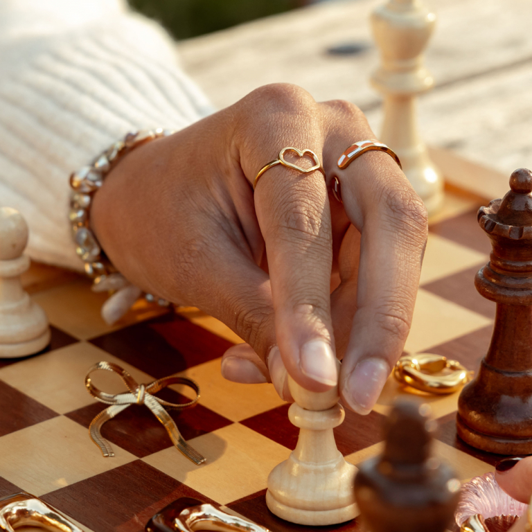 Anelli in acciaio inossidabile con motivo a blocchi oro