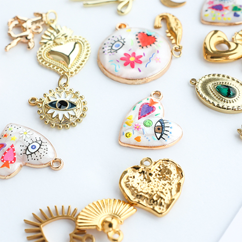 Questa nuova collezione di ciondoli in metallo funky con smalto color oro è un vero colpo d’occhio! Combina i ciondoli con catena a rolò e vari ciondoli per una collana unica e giocosa. Mescola, abbina e crea la tua collezione funky per la primavera!